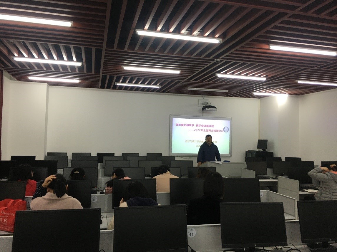 (通讯员:韩群)3月31日下午,数学与统计学系教工第一党支部在逸夫楼A301开展了“凝心聚力同筑梦 携手奋进新征程”的主题党日活动,学习领会2022年全国两会精神,支部联系人、学院副经理沈婧芳参加会议,会议由支部书记石峰主持。