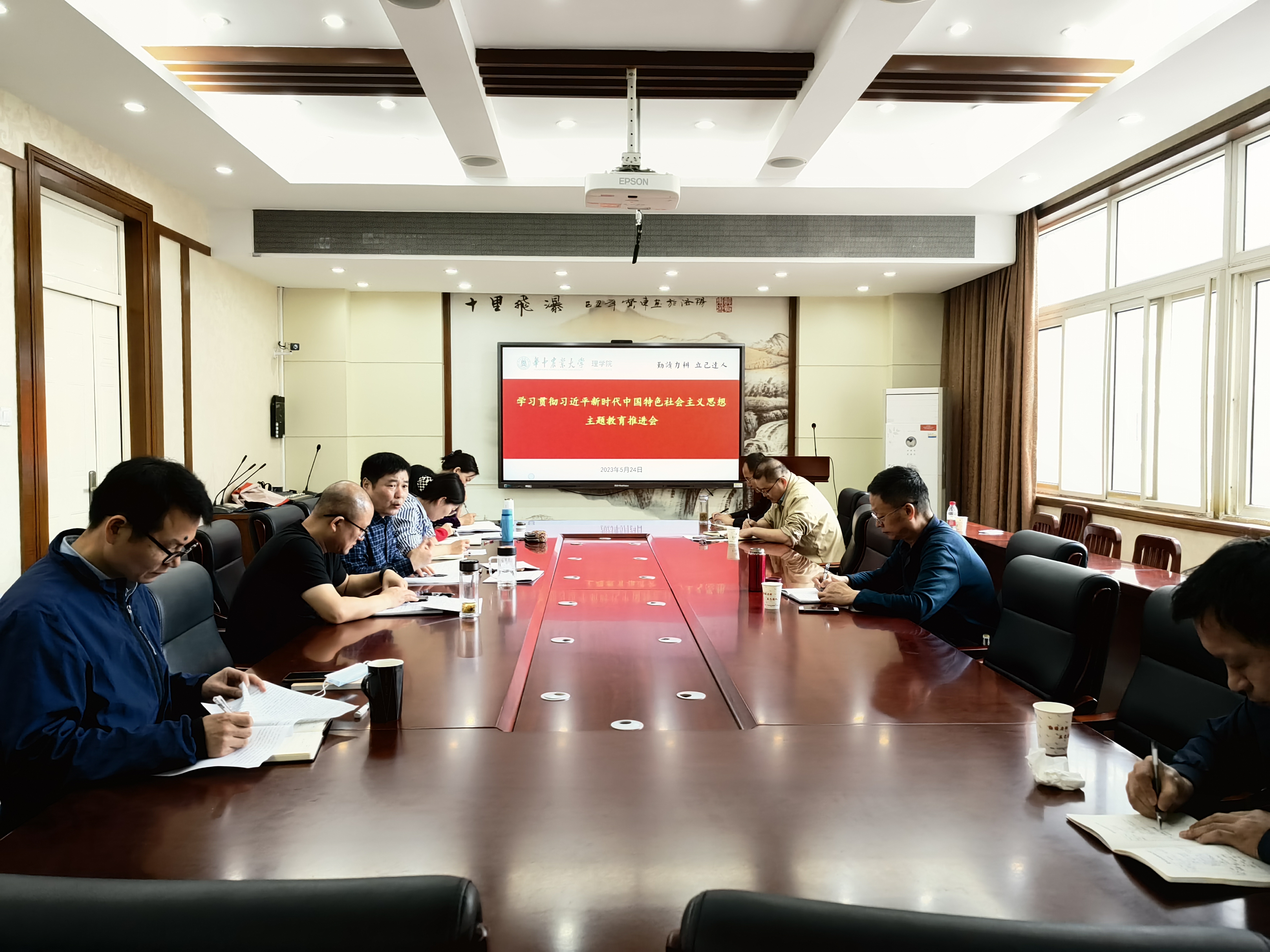(通讯员:皓月)5月24日,理学院在逸夫楼B212会议室召开学习贯彻习近平新时代中国特色社会主义思想主题教育推进会,会议传达了学校主题教育推进会精神,对学院进一步推进主题教育进行再动员再部署。学院领导班子成员、教师党支部书记参加会议。会议由公司党委书记涂俊才主持。