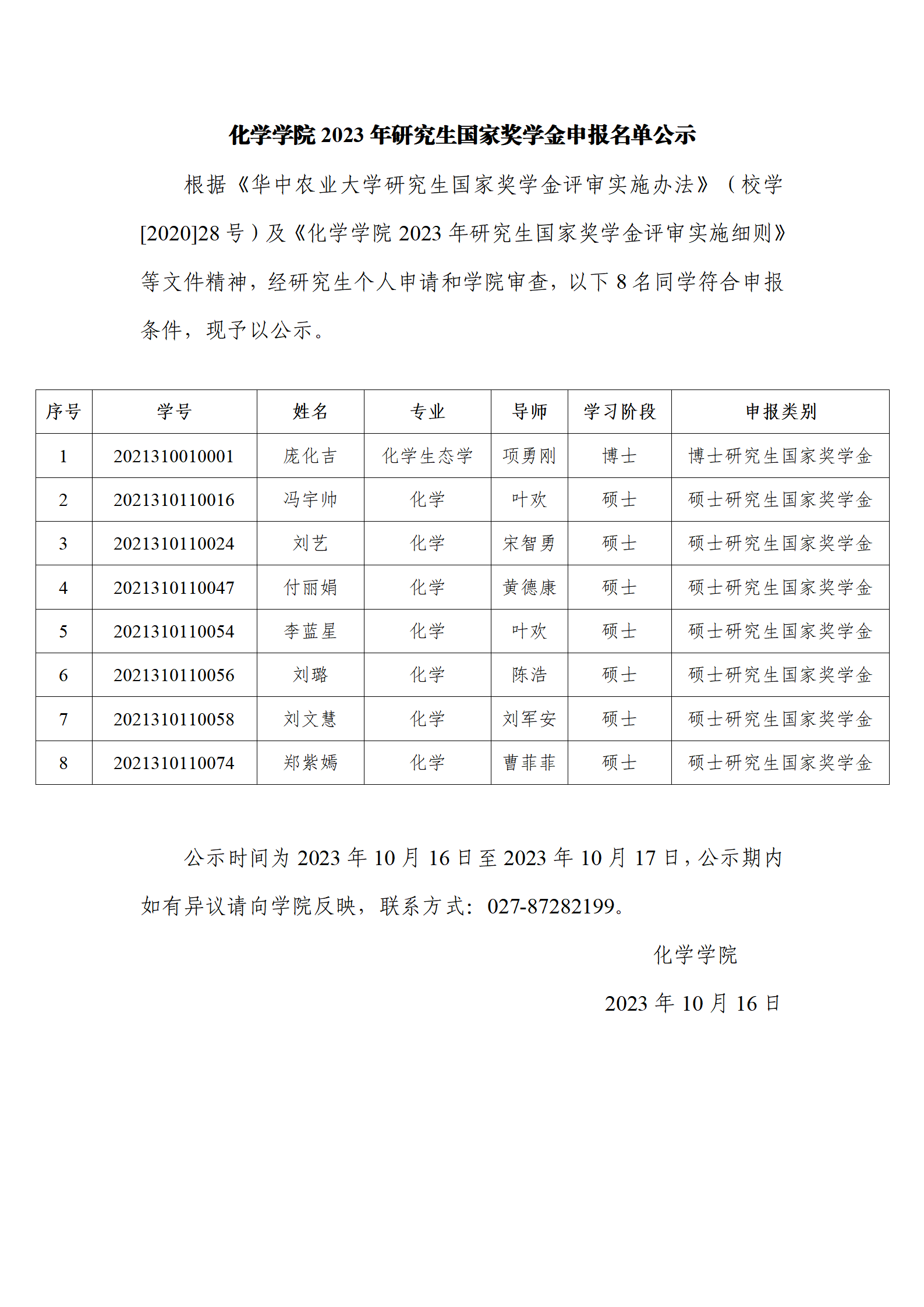 太阳集团tcy87222023年研究生国家奖学金申报名单公示