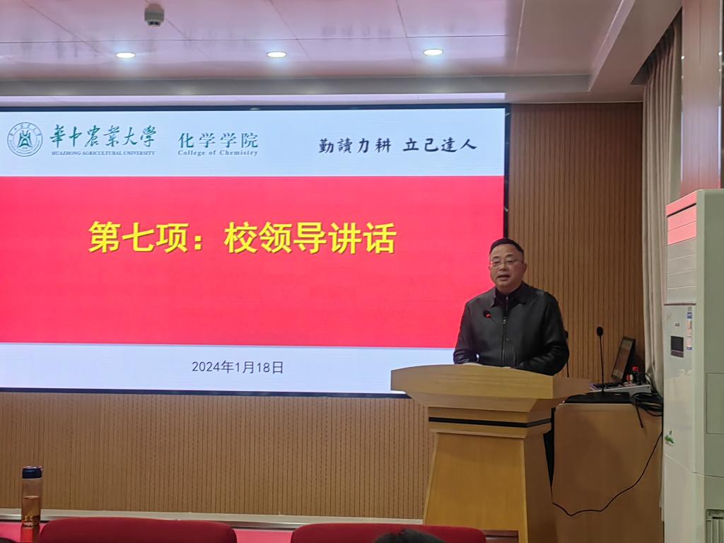 涂俊才首先代表学院领导班子进行述职汇报。他以“凝聚共识 抢抓机遇 于变局中开新局”为题,从涵育一流业绩、培育一流人才、共建一流化学、夯实一流党建等五个方面报告了2023年度主要的进展和成绩。学院持续深入学习贯彻党的二十大精神,扎实开展学习贯彻习近平新时代中国特色社会主义思想主题教育,顺利完成数理化学科优化调整,通过化学一级学科硕士学位授权点专项核验,全力推进化学一级学科博士学位授权点申报,积极推进资源化学专业设置,重点推进湖北省重点实验室申报建设。重点研发项目实现突破、科研经费突破千万。乡村振兴荆楚行活动有序开展,党建结对共建形成品牌。搭建常态化学术交流平台——化院讲堂,邀请国内外化学学科相关领域高水平专家学者来校交流,促进学科交叉与国际合作。教师培训持续强化,教师荣获省教创赛特等奖1人、二等奖1人,获批省一流本科课程1门、省级课程思政示范项目1项;获批立项校名师工作室培育1个。员工荣获国家级学科竞赛一等奖1项,省部级一等奖8项、二等奖7项、三等奖4项,本研员工就业率稳居学校前列。学院以“两季三节”为契机,以文体活动为载体,持续推进构建师生融乐机制,聚焦德智体美劳五育,大力推进文化建设。学院落实党委主体责任,探索红色导师“三课”制度,丰富师生支部结对共建载体,建立红色导师担任“培养联系人”制度,推进党建质量源头工程;持续擦亮党建品牌,祝鑫工作室入选全国高校辅导员名师工作室,并获评中央网信办评选的“全国优秀网评账号”(全国教育系统7个);持续开展党风廉政建设,共建晴朗狮山。始终坚持做优意识形态工作、做实统战工作,做强群团与离退休工作,做好硬件条件建设,大力创建文明校园。