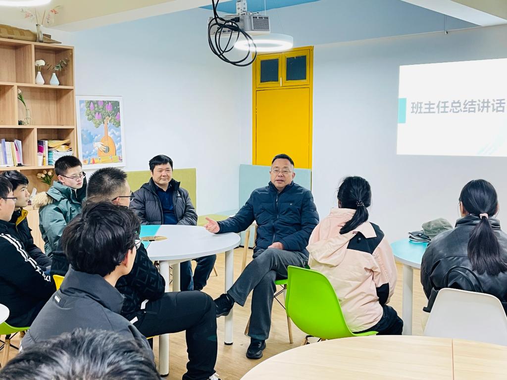 雪后的狮山,寒意未退。同学们踏着风雪返回校园,考虑到天气寒冷,学院组织班主任老师在寝室召开本学期的第一次班会。2月25日晚七点开始,公司在荟十宿舍楼召开收心班会,副董事长青平、公司党委书记涂俊才、党委副书记祝鑫、副经理曹菲菲、副经理曹敏惠、副经理周静舫以及各年级辅导员走入班会现场,与同学们亲切交流,迎来新学期的第一课。