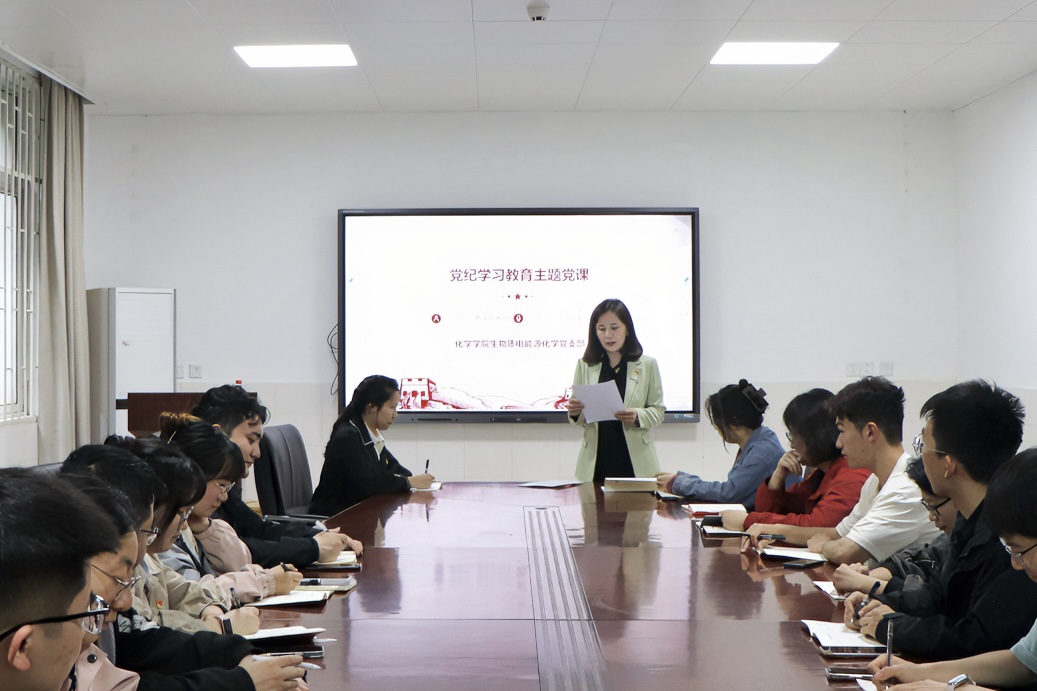 (通讯员:赵典)4月30日下午,太阳集团tcy8722副经理曹菲菲教授在化学楼A106会议室为生物质电能源化学研究生党支部讲授党纪学习教育专题党课。支部全体研究生党员参加活动,活动由党支部书记曹仁达主持。