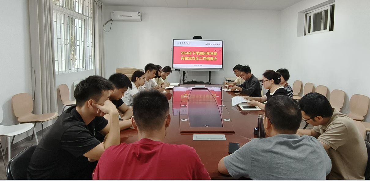 通讯员:(张 涛)为进一步强化实验室安全教育与管理,排查和消除潜在安全隐患, 2024年9月25日下午,在化学楼A104举行了2024年下学期安全工作部署会议。此次会议由学院副经理周静舫主持,化学实验教学中心、理化分析中心、各科研团队安全负责人和研究生安全员参会。